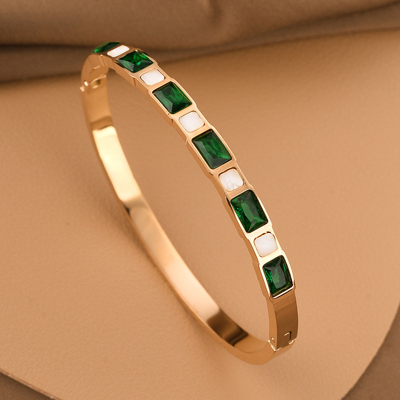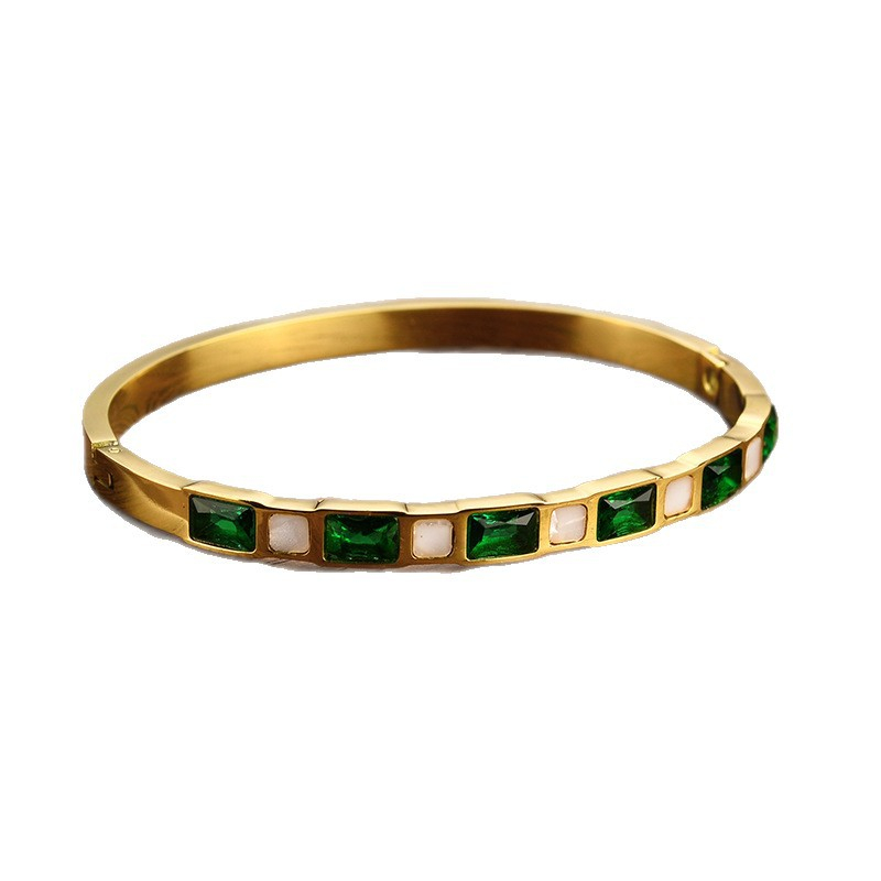 Emerald Diamond White Shell Titanium Steel Bracelet For Women